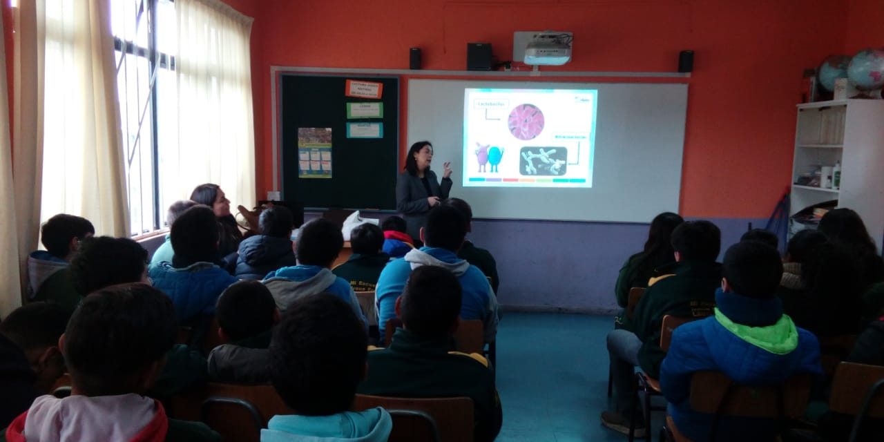 Charla de los prebióticos y probióticos, para estudiantes de 7º y 8º año básico impartida por la universidad de la frontera UFRO y conicyt.