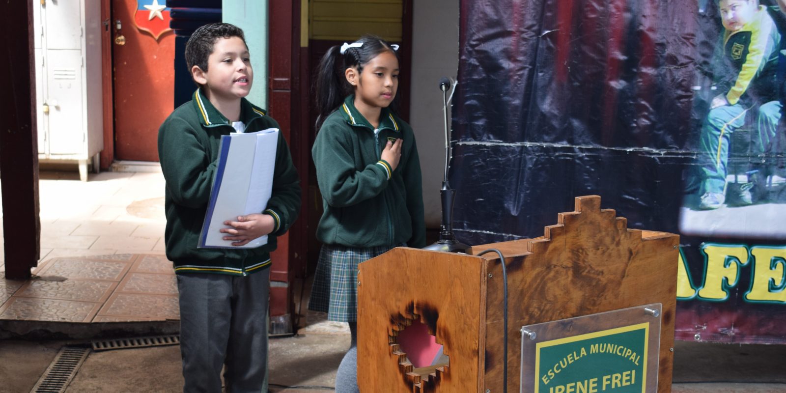 La unidad educativa Irene Frei, junto con entregar las herramientas básicas para que hagan frente a la vida, de brindar virtudes, valores y principios que nos hacen personas integra y de bien, también se deben desarrollar habilidades que se van adquiriendo a través de expresiones artística. Asa un grupo de estudiantes de primero y segundo año básico presentaron la poesía titulada “LOS ALIMENTOS”. Por otra parte el grupo de coro dirigido por nuestra fonoaudióloga Alejandra Levinao Meliqueu interpretó la canción “UN AÑO DE SEBASTIÁN YATRA”.