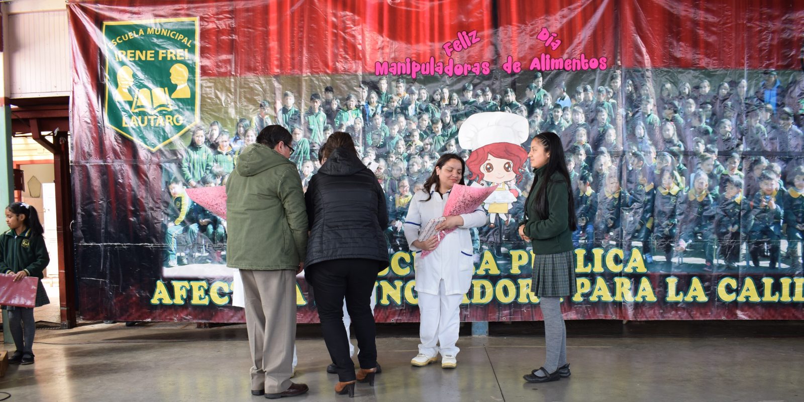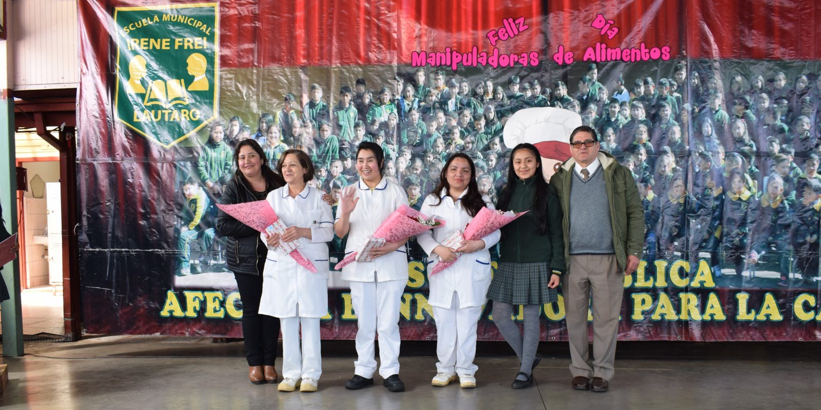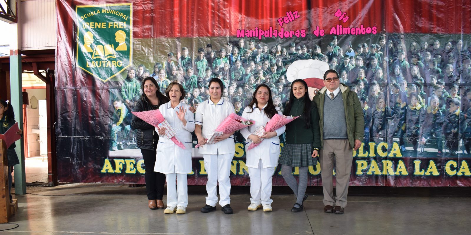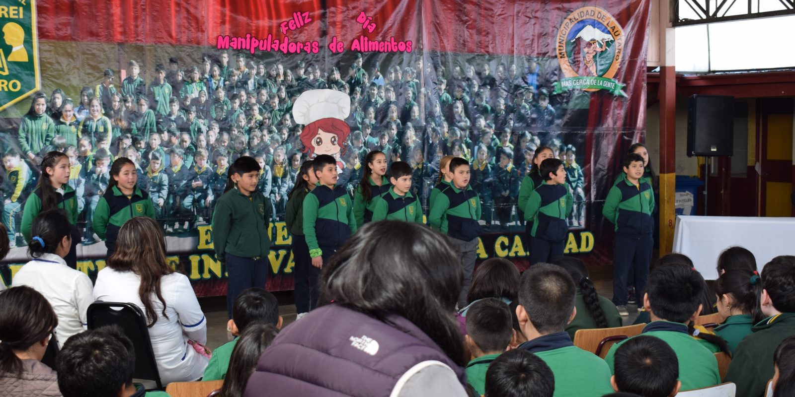 hoy como todos los años se realizó un acto a nuestras manipuladoras de alimentos que día a día dedican el tiempo para realizar la función de entregar a cada uno de nuestros estudiantes su comida diaria, es por eso que los niños de primero y segundo año básico hay querido celebrar este hermoso día, con poemas y canciones dedicadas a ellas.