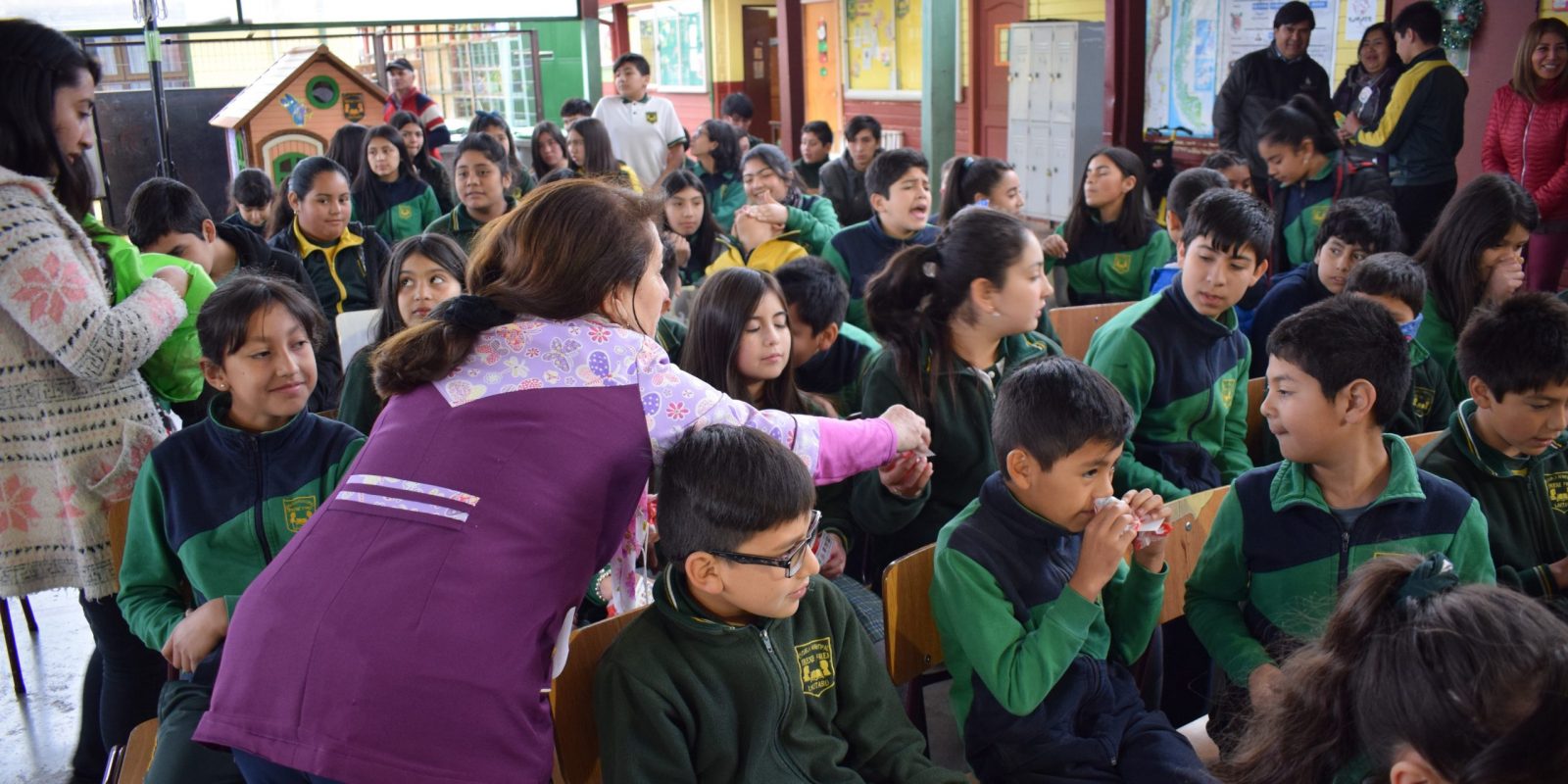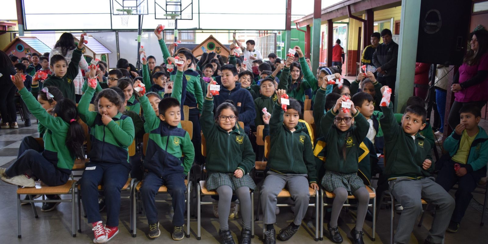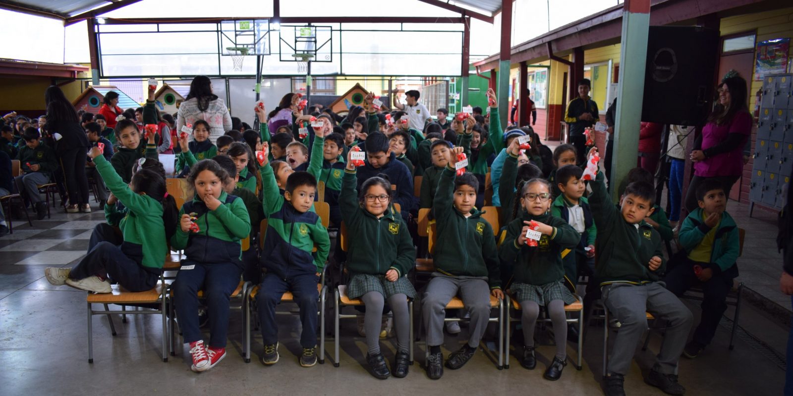 Hoy viernes 06 de diciembre los estudiantes de NT1 (NIVEL DE TRANSICIÓN 1) A octavo año básico en una actividad interna se reunieron en el patio techado del establecimiento para dar a conocer sus carteles y explicar el contenido de éstos. Por otra parte los cursos participantes recibieron un pequeño presente.